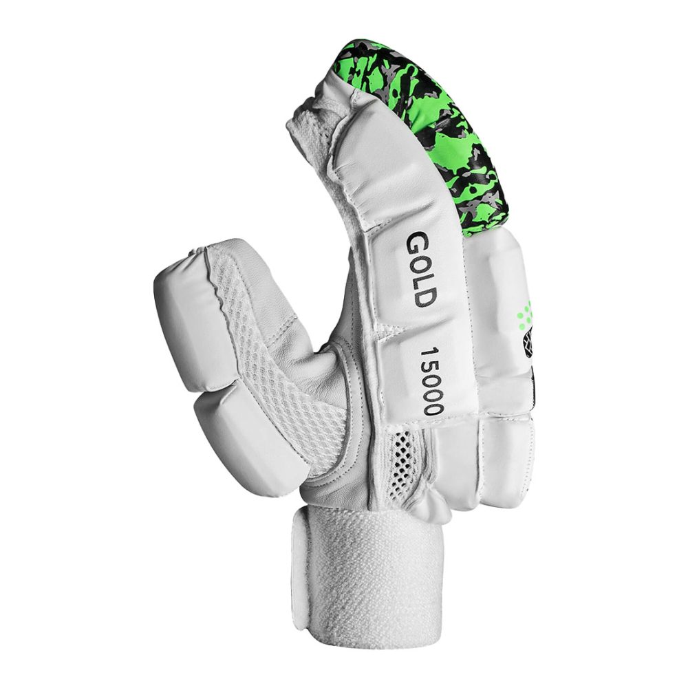 New international designed gold 15000 cricket gloves are an apple of the eye for many batsmen because of their jaunty green and white looks. The inculcation of Pittard leather in its composition enables originality and quality. Getting popular among the community as a designer glove for batsmen, this beauty is quite economical in pocket yet gives players a quality experience. The factor of comfort and protection is done through an enhanced finger chamber system.