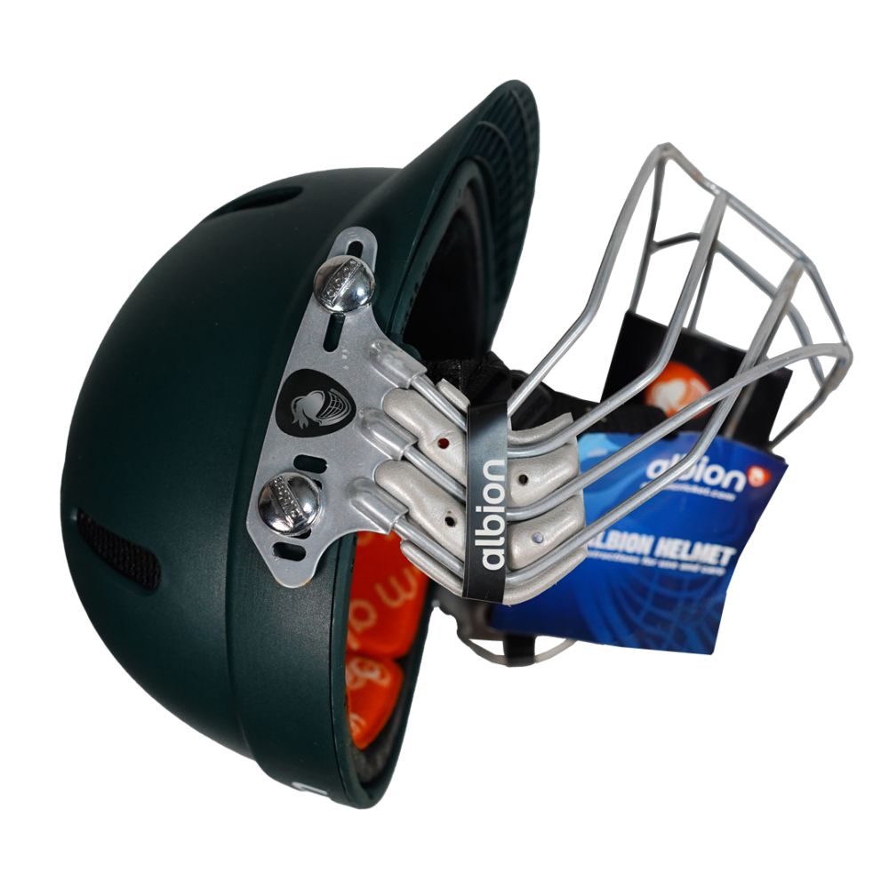 The Albion Cricket Helmet is a modern protective headgear designed for cricketers, offering both safety and comfort. Known for its sleek design, it features a high-quality, lightweight construction with a durable outer shell made from high-quality materials. This helps ensure the helmet can withstand impacts while keeping the player’s head protected.